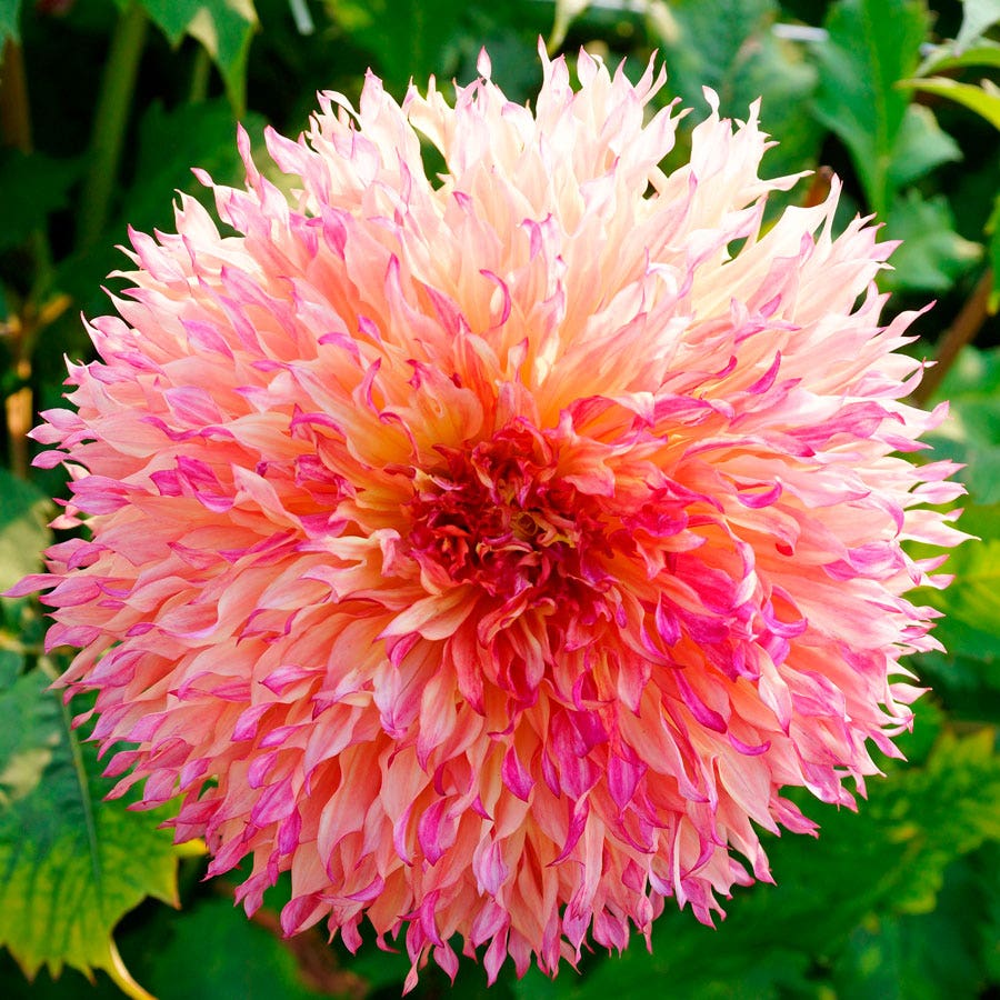 Myrtle's Folly Dahlia, a captivating fimbriata dinner plate dahlia that promises to enchant your garden from the earliest whispers of spring until the crisp embrace of late fall's first frost. Picture a spectacle of nature unfolding before your eyes, as this splendid beauty graces your garden with masses of exhibition-quality blooms, each measuring a breathtaking 6 to 8 inches in diameter. With petals delicately fringed in shades of mauve and purple, seamlessly transitioning into vibrant oranges, Myrtle's Folly is a true masterpiece of floral elegance.