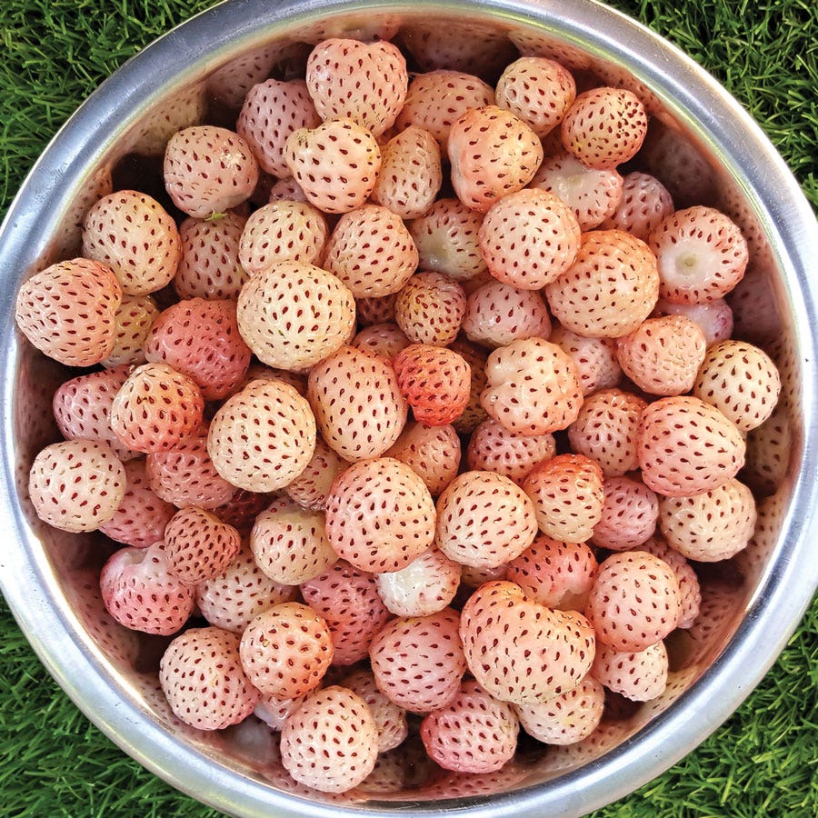 'White Carolina' is an attractive, low-growing plant that's suitable for an edible landscape. It grows 8 to 10 inches tall and blooms in five-petaled flowers that attract pollinators, including butterflies. The flowers are followed by small to medium-sized, white to pale pink berries speckled with red seeds. The sweet berries have a light pink interior, a nice aroma, and a distinctive pineapple-like flavor, which is what makes it unique from traditional strawberries. Considered an everbearing, or day-neutral variety, 'White Carolina' has the ability to produce fruit continuously throughout the growing season. These unusual berries are gaining in popularity because of their extraordinary appearance and delicious flavor.