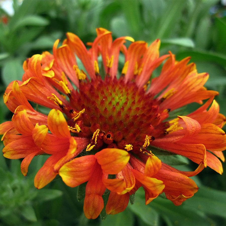 Gaillardia 'Fanfare Blaze' shines in the landscape with incredible pinwheel shaped flowers in a orange and red. The blooms are contrasted against grey green foliage. It will not only light up your landscape in the spring but it comes back for a repeat show in the fall.