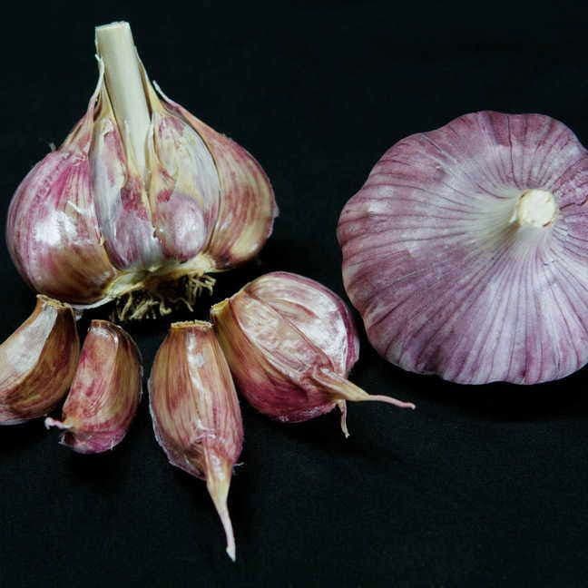 - Description / Garlic Chesnok Red Bulbs- Days to Maturity: 90 to 150 - Garlic Chesnok Red is one of the best cooking garlics around. A hardneck variety, Chesnok Red is very flavorful, having won taste tests for best-baking garlic from Sunset Magazine, Rodale, Martha Stewart, and more. The large, easy-to-peel cloves keep their shape and full-bodied flavor when cooked, making them a valuable addition to many types of cuisine. This purple stripe garlic is sold in a 1/2-pound bag containing at least 2 to 3 bulbs. - This late-season garlic is especially good for baking, due to its creamy texture. The bulbs are white on the outside with 8 to 10 brilliant red cloves inside. Garlic Chesnok Red is also an excellent choice for storing, as it lasts 4 to 6 months. - Garlic Chesnok Red is quite easy to grow, having very few problems with pests. Plant it in rich, well-drained soilgarlic doesn't do well in dense soils with few nutrients. You should separate the cloves just prior to planting, placing them 4 to 6 inches apart and covering them with 1 to 2 inches of soil. In the north, garlic is best planted in October, while southern regions should plant between November and January.