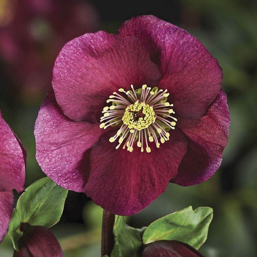 - Description / Helleborus HGC® Leona- Helleborus HGC® Leona is an herbaceous evergreen perennial offering winter to spring interest. Early blooming, Leona's wealth of large, brilliantly colored dark red flowers augur spring beautifully. Borne on long, sturdy stems, the flowers are upward facing, unusual for a hellebore. - Helleborus HGC® Leona has a bushy, clump-forming habit of lobed, glossy, deep green leaves. It is perfect for containers, woodland gardens, and shady borders. - Cold hardy and low maintenance, hellebores prefer dappled to full shade and organically rich, moist, well-drained soil. The plant is drought tolerant once established, but mulching helps retain moisture in summer.