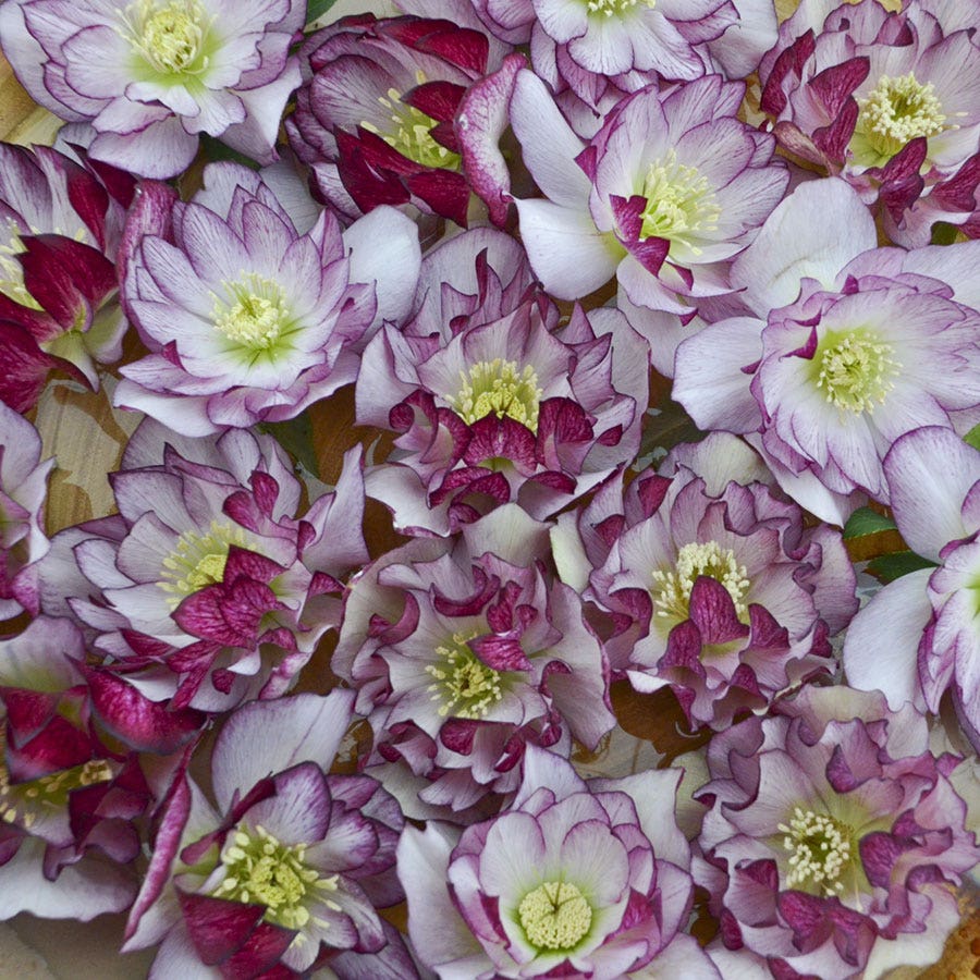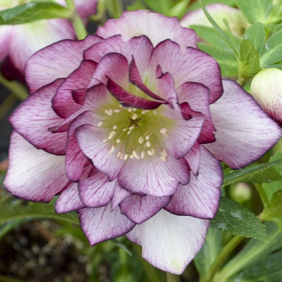 - Description / Helleborus Wedding Party® 'Blushing Bridesmaid'- Hybridizer Hans Hansen has a passion for hellebores. In his breeding work, he selects for plants with notable vigor, showy floral displays with large numbers of blossoms per plant, and rich flower colors. The WEDDING PARTY® series showcases his double flowered selections, available in numerous, beautiful color shades and 'Blushing Bridesmaid' is no exception! You'll be struck with the beauty of its double white flowers with raspberry pink veining and delicate edging. These pretty blooms hand elegantly on dark evergreen foliage. Not to mention, they are deer and rabbit resistant so you don't need to worry about pesky pests nibbling on these beautiful blooms. Helleborus are the harbinger of spring, blooming for six weeks or more in the late winter and early spring. They thrive in the shade so you can all some bold color to your shady corners and beds. Helleborus were named the Perennial Plant Association's Plant of the Year in 2005. They are perfect perennials when you need a splash of color as you weary of winter's bare grip. You'll find yourself awe struck when these flowers light up your shade garden with color in the early spring.