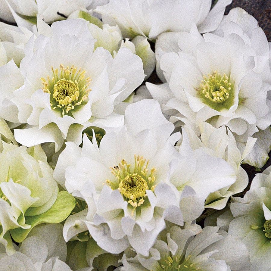 - Description / Helleborus Wedding Party® 'Wedding Bells'- Hybridizer Hans Hansen has a passion for hellebores. In his breeding work, he selects for plants with notable vigor, showy floral displays with large numbers of blossoms per plant, and rich flower colors. The WEDDING PARTY™ series showcases his double flowered selections, available in numerous, beautiful color shades and 'Wedding Bells' is no exception! You'll go starry eyed for 'Wedding Bells' with it's clear, white double flowers that drop elegantly from dark evergreen foliage. Not to mention, they are deer and rabbit resistant so you don't need to worry about pesky pests nibbling on these beautiful blooms. Helleborus are the harbinger of spring, blooming for six weeks or more in the late winter and early spring. They thrive in the shade so you can all some bold color to your shady corners and beds. Helleborus were named the Perennial Plant Association's Plant of the Year in 2005. They are perfect perennials when you need a splash of color as you weary of winter's grip. You'll find yourself swooning when these flowers light up your shade garden with color in the early spring.