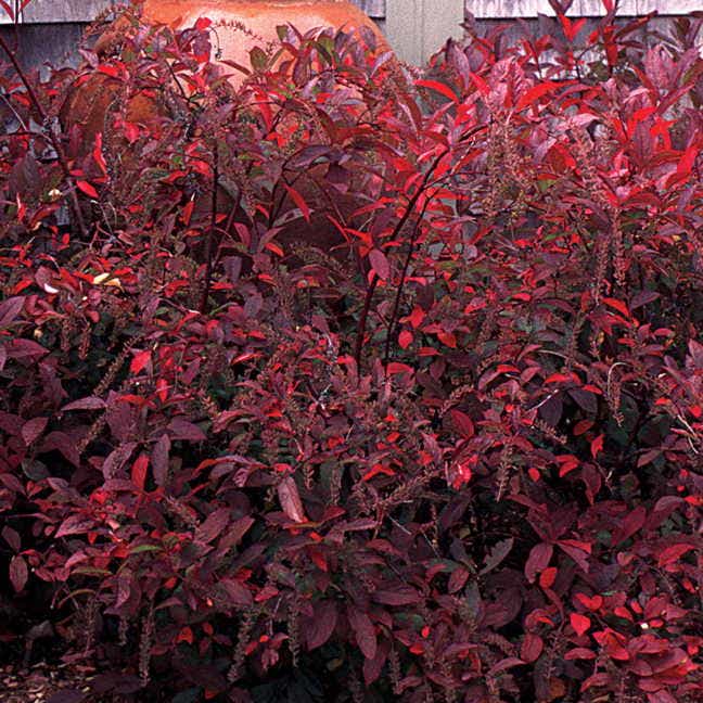 Looking at Itea 'Henry's Garnet' in spring or summer, you can admire its sweet fragrance and lovely cascading blooms against fresh green foliage, but you might wonder why on earth it has "garnet" in its name. Not until the cool weather of autumn arrives and every leaf turns a sizzling shade of rosy-pink to red will you realize that while you've been enjoying the beauty of this shrub for months, you've actually been seeing it "offseason"! Now that's multi-season appeal!