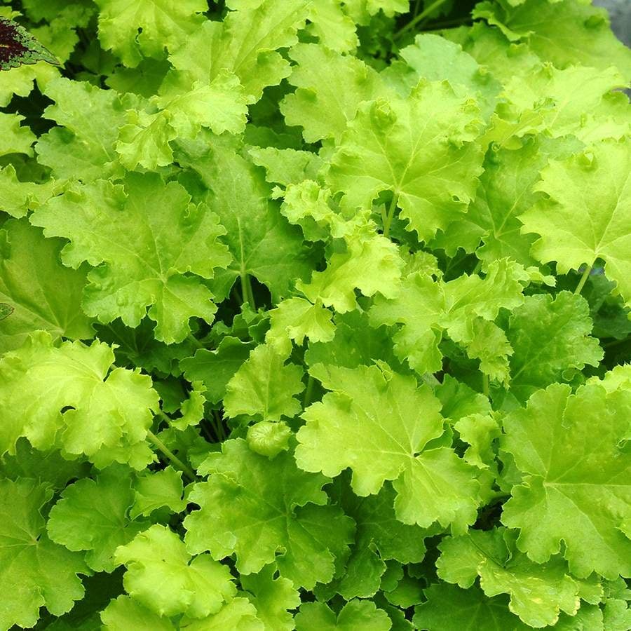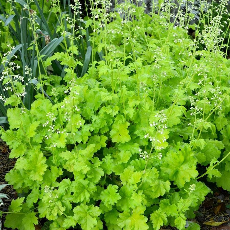 Looking for some bold contrast in your beds and borders? Look no further than Heuchera 'Lime Rickey'. Brilliant ruffled foliage emerges chartreuse and matures to lime green. This showy selection provides dramatic contrast to brighten shade gardens. Small, pure white flowers on tall spindly stems provide additional interest. It provides multi-seasonal interest in both gardens and mixed containers. This refreshing color is the perfect contrast plant allowing it to play well with many purple leaved plants. A vigorous grower which is topped with thousands of small pure white flowers in spring that will delight pollinators. Evergreen in mild winter areas; an herbaceous perennial in colder regions.