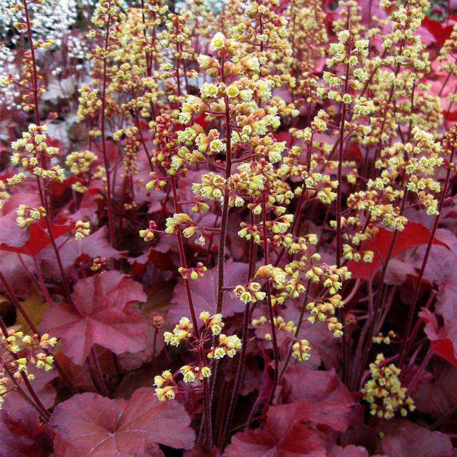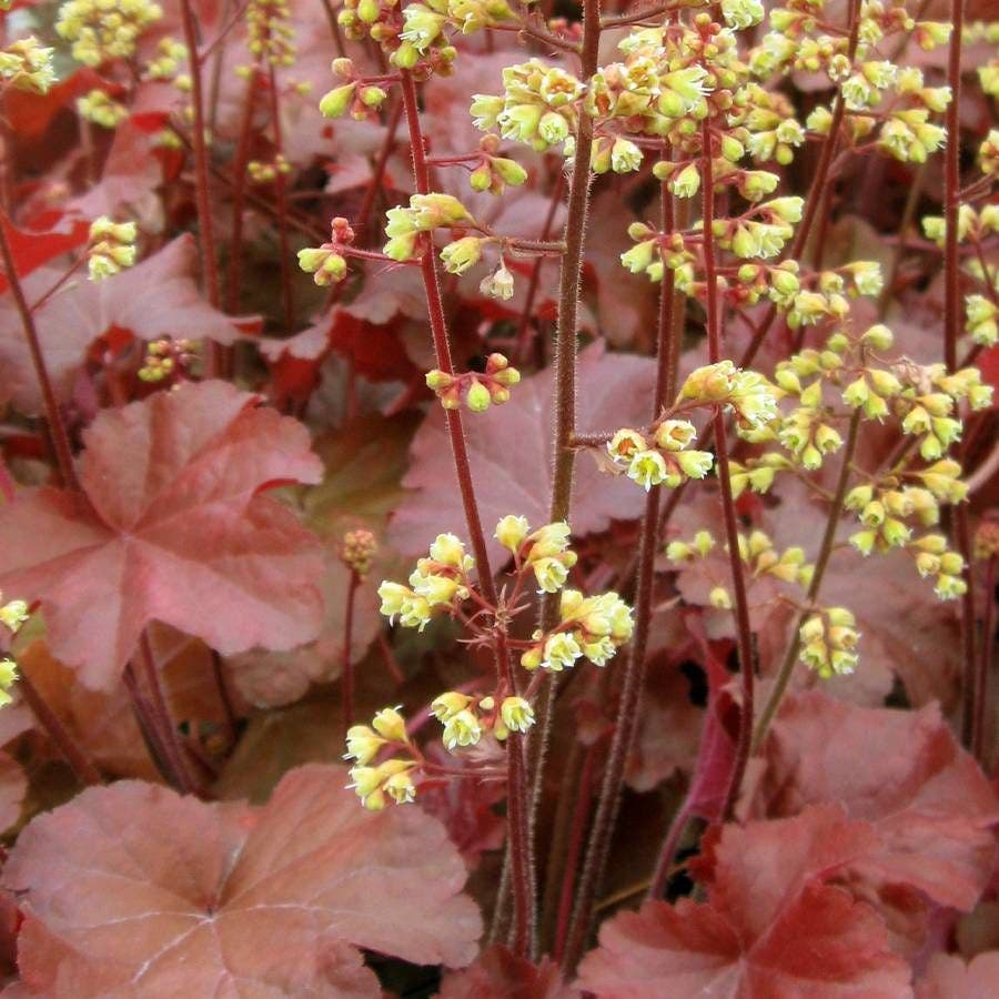 'Blondie' will provide your shade garden with caramel colored foliage and flower spikes of creamy yellow in the spring and summer months. It is a blooming machine with up to twenty flower spikes at a time. You won't be the only one who loves the constant blooms, your butterflies will flock to it as well. It is compact enough for a container, or grow it directly in the landscape. Commonly called Coral Bells, this Heuchera is hardy even to -30 degrees F in the winter months. It is heat tolerant up to zone 9b and provides high impact color even in a hot climate!