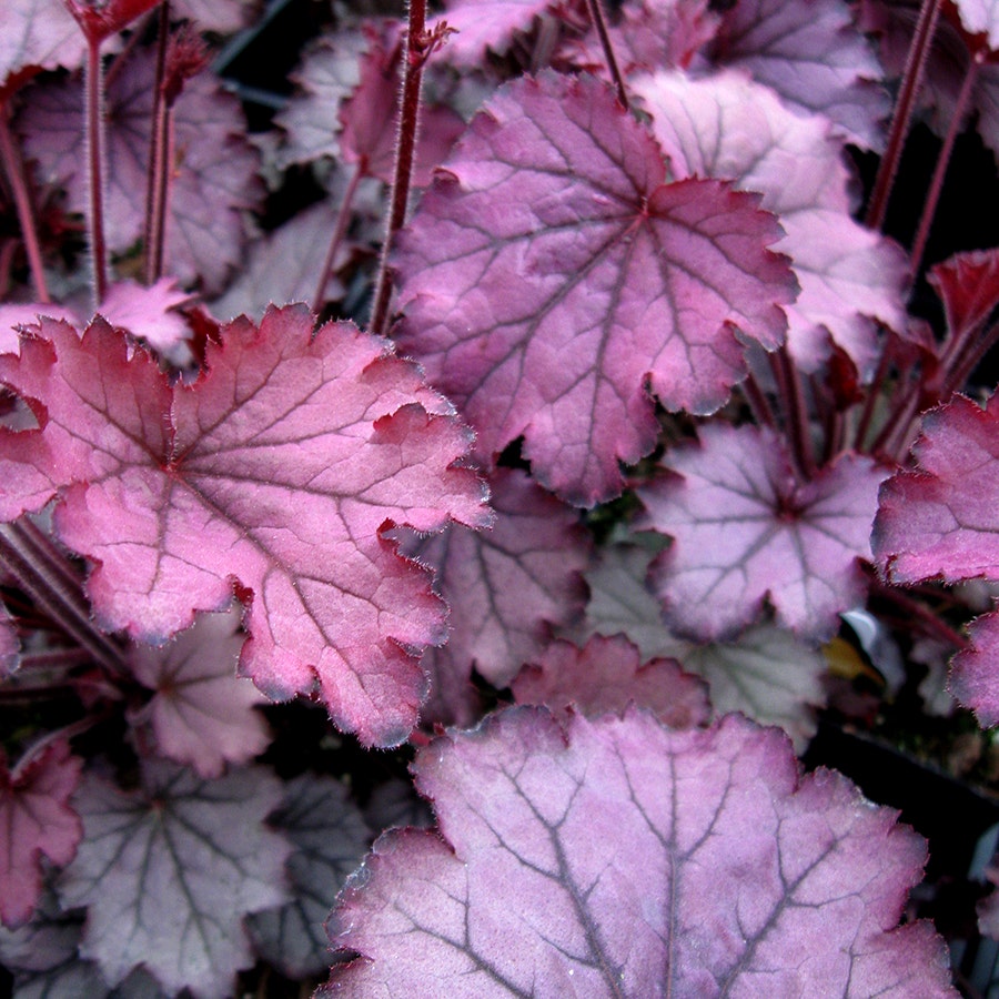 'Sugar Berry' will provide your shade garden with violet foliage with dark veining with blooms of soft pink in the spring and summer months. It is one of the most showy and unique plants for your garden. You won't be the only one who loves the color and blooms, your butterflies will flock to it as well. It is compact enough for a container, or grow it directly in the landscape. Commonly called Coral Bells, this Heuchera is hardy even to -30 degrees F in the winter months. It is heat tolerant up to zone 9b and provides high impact color even in a hot climate!