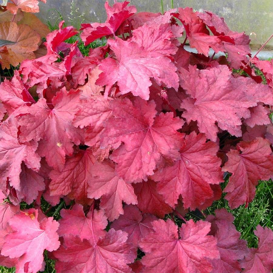 An absolute "must have," Heuchera 'Magma' astounds and delights with giant, rounded leaves of bright pink or purple with prominent veining. It's an understatement to say that this is an attention-getting plant; the only word that really describes it is "eye-popping"