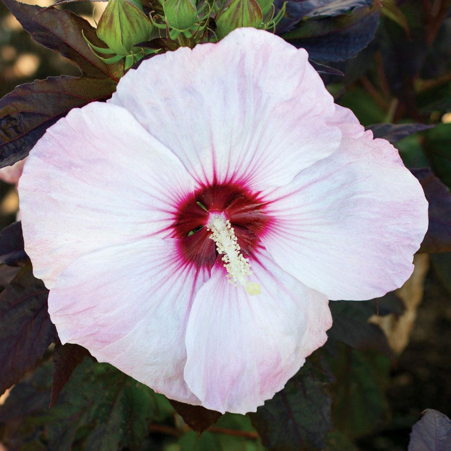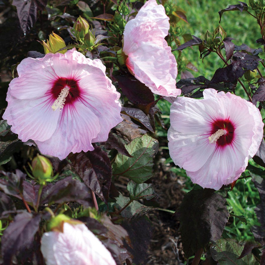 Graceful, blush pink blooms are plentiful on this stunning hibiscus. Light pink petals unfurl from dark magenta centers creating a show stopping bloom that will have you gasping in awe. Not to mention how beautifully the pink blooms contrast against the dark green-burgundy foliage. It is truly an eye catching experience that you do not want to miss. This series is known for exceptionally large flowers and vivid colors so you will not be disappointed with this incredible variety. Get it exclusively at Wayside Gardens!