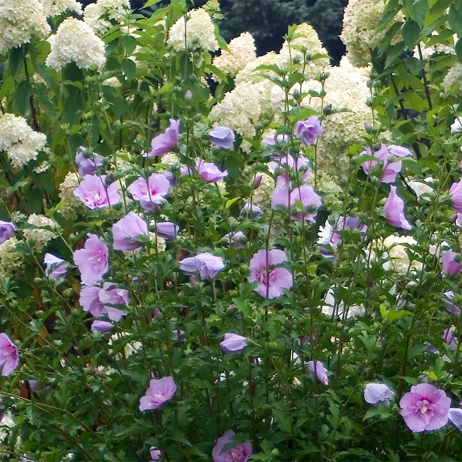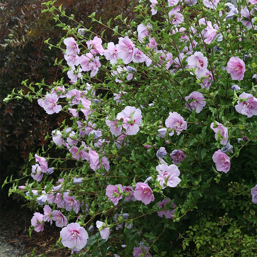 Enjoy up to 5 months of nonstop flowers from this glorious Rose of Sharon! A well-branched, flower-happy shrub you'll want for all the sunny spots in your landscape, Hibiscus Lavender Chiffon is a hardworker that transforms the landscape from summer into fall.