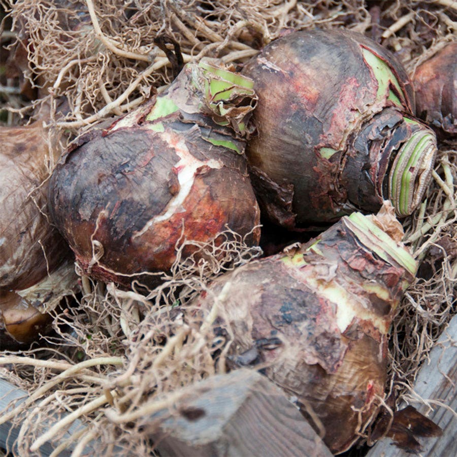 - Description / Hippeastrum Red Southern Landscape Amaryllis Bulbs- Hippeastrum Red Southern Landscape Amaryllis contains a variety of red amaryllis. Amaryllis are a popular choice for holiday gifts when potted, but they also thrive beautifully in garden settings. Exceptionally easy to grow, these bulbs often produce multiple flower stalks. Each stalk, measuring 18 to 30 inches tall, can yield 2 to 6 stunning blooms, with each flower reaching up to 8 inches in diameter. Featuring a tropical trumpet-like shape, these vibrant flowers bloom over an extended period and are remarkably long-lasting. - These Hippeastrum spp. varieties, commonly called amaryllis, are tender bulbs that typically need to be grown indoors in pots across most of North America. In warmer USDA Zones 8-10, however, these bulbs can be planted outdoors, provided they are shielded from freezing conditions. When planting outside, position the bulb with its neck protruding above the soil, water thoroughly, and fertilize after the leaves have appeared. Repeat fertilizing throughout the spring, then allow the plant to grow naturally. - For indoor growth, choose a 6- to 8-inch pot and fill it halfway with soil. Position the bulb on top, then backfill with additional soil to secure the bulb, ensuring that the top third remains exposed above the soil line. Leave space in the pot to allow for watering. Amaryllis thrives in room temperatures and bright light, which helps keep the plant compact. To prevent the flower stalk from leaning as it grows, rotate the pot regularly. - Although some gardeners discard their amaryllis after it blooms, the bulbs can be encouraged to re-flower with proper care. Here's how: After flowering, trim the flower stalk just above the bulb's neck, leaving the foliage intact to help restore the bulb's energy. Place the pot in a sunny window and water only when the soil is dry. Fertilize regularly to promote healthy growth. Once the danger of frost has passed, move the pot outdoors for the summer. In the fall, when frost kills the foliage, remove the leaves and store the bulb in a cool, dry location for 2½ months without watering. After the rest period, you can begin the growing cycle again as described above.