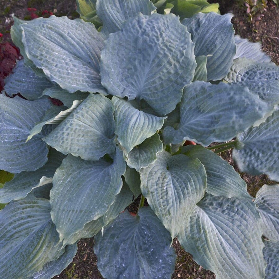 Who wouldn't love seeing big silvery fan-like leaves waving in the breeze like a living ocean in the shade. Hostas are quite possibly the most versatile and varied perennials for the shady garden. This hosta is a glorious example of the power of vivid foliage as it presents its deeply corrugated leaves with delightfully crimped edges. As if that weren't impressive enough, it sends up pale purple flowers in summer and fall which attracts hummingbirds and butterflies and fills your garden with life. The hosta is low maintenance and long lived and will make a dramatic statement in your shady garden. Add this shade lover to your border or beds for a some textural foliage interest. The large blue-silver leaves are a shimmering addition to any shady spot that needs some dressing up. Adorn your shade garden with the unique glittering gem that is the 'Diamond Lake' hosta.