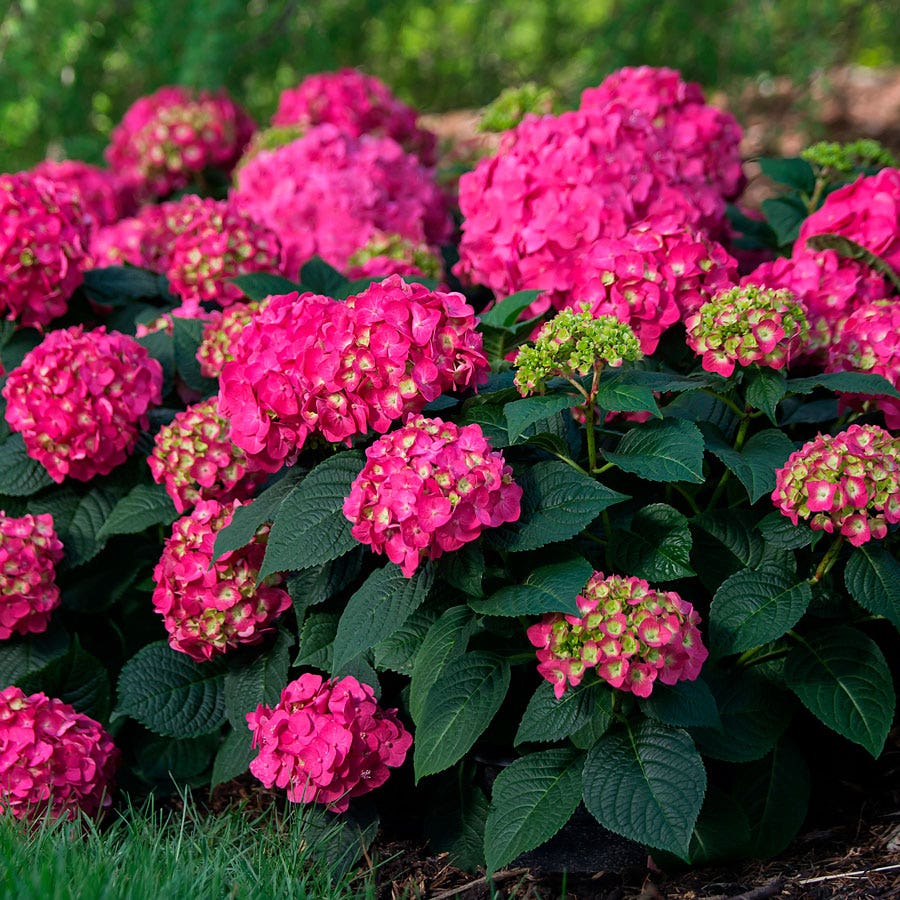 The mophead type blooms on this Hydrangea Endless Summer® Summer Crush® Bigleaf Hydrangea come in profusion and are floral quality, and the stems are strong and sturdy. So, you can use the blooms in your fresh and everlasting arrangements, or simply cut a few stems and stick 'em in a vase for an effortless, chic bouquet. And you get to choose their color. An acidic soil with a pH below 6.0 will produce neon purple blooms; an alkaline soil with a pH above 6.0 will produce raspberry red flowers. Either way, you can expect intense color, and the blooms appear on old and new wood, so you can also expect them all season long.