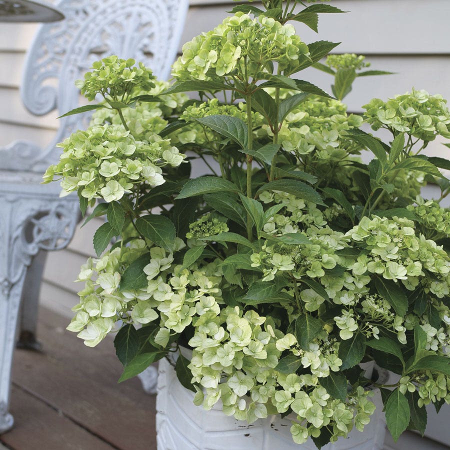 Proven Winners® ColorChoice® Flowering Shrubs proudly introduces Fairytrail™ Green, a captivating addition to the esteemed Fairytrail™ series of cascade hydrangea varieties. Originating from the acclaimed Fairytrail Bride® (Syn Runaway Bride®), this exceptional mophead hydrangea plant variety boasts medium-sized, deciduous shrubbery that bursts with exuberance. Each aspect of Fairytrail Green, from its lush, cascading branches to its clusters of enchanting lime green florets, is a testament to its botanical brilliance. The graceful foliage, adorned with small green leaves, creates a mesmerizing display at every leaf node, courtesy of both terminal and lateral buds.