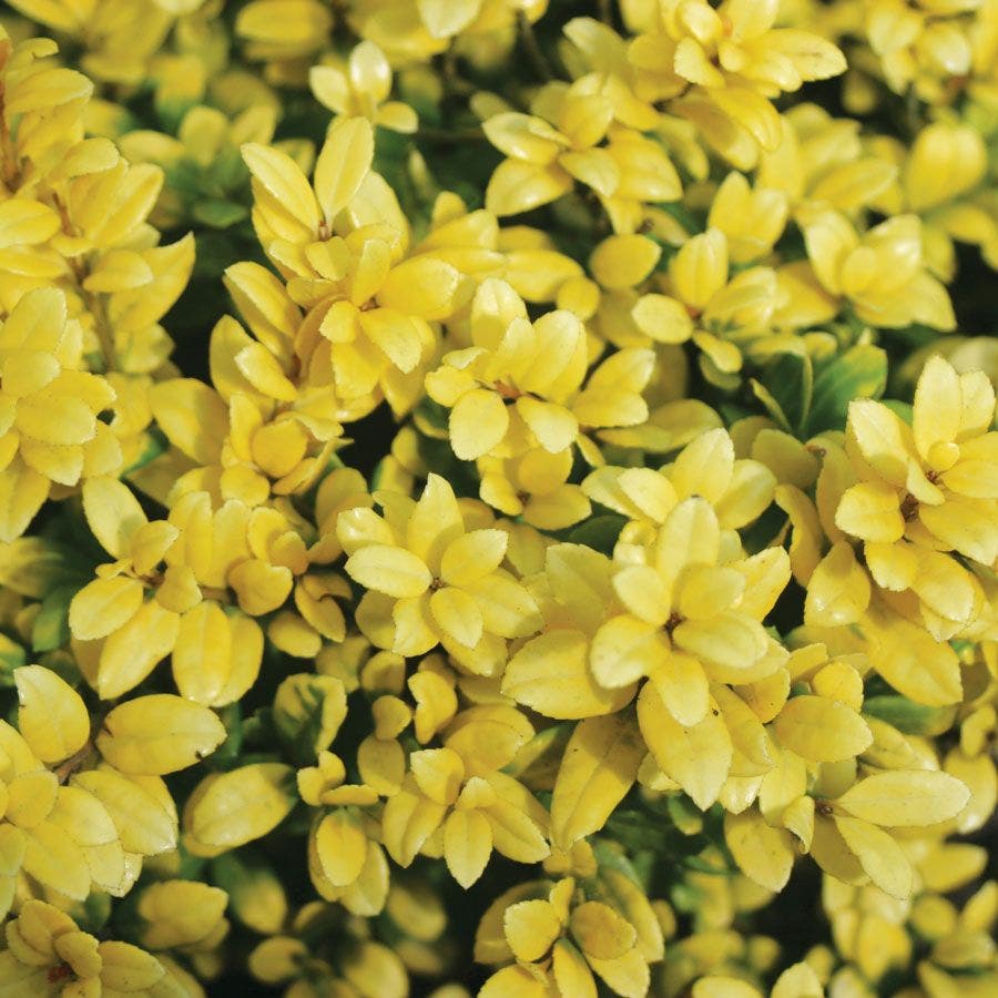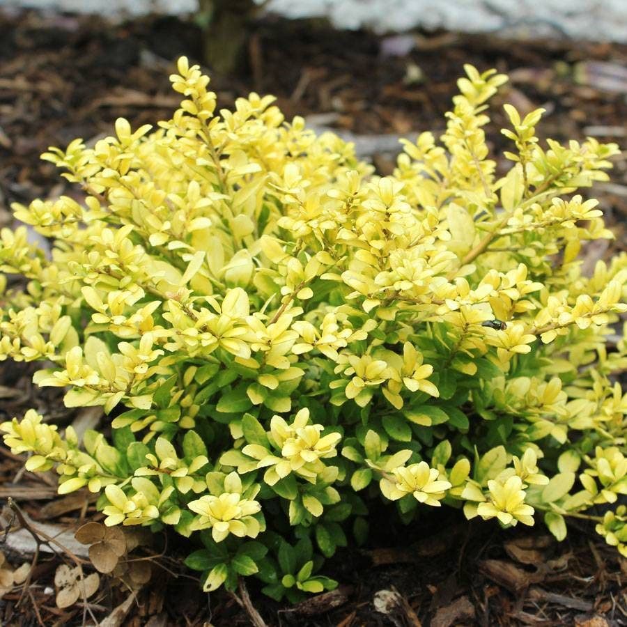 Ilex Brass Buckle® is a perfect choice for edging or bordering any area of your yard or garden with bright color. In mild climates, it can even be used as a container plant to spice up your porch or deck. The foliage remains glossy and vibrant all year long. It features a combination of light green, yellow, and chartreuse leaves giving it a unique bold appearance. It even remains attractive in the cooler fall and winter months. It will be a statement in your landscape all year long. Growing only to about 1 foot in height, this dwarf Japanese holly is a perfect choice for filling in smaller areas of the landscape with undeniable color and foliage interest.