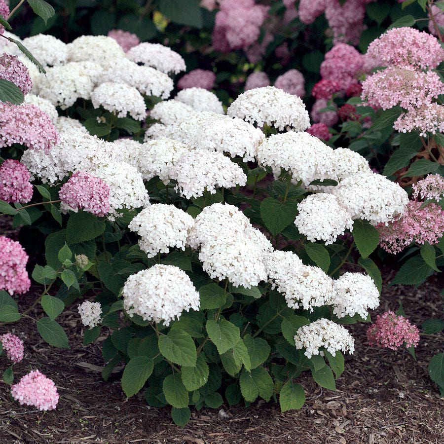 As a proud member of the esteemed Invincibelle™ series, Hydrangea Invincibelle Wee White® exudes an irresistible charm that's hard to miss. Its blossoms emerge delicately in a soft, blush pink hue, enchanting onlookers before transforming into a pristine white spectacle. Each sizable bloomhead stands tall and proud, supported by sturdy, flop-proof stems, inviting gardeners to clip a few for indoor arrangements and bring the beauty of the outdoors inside.