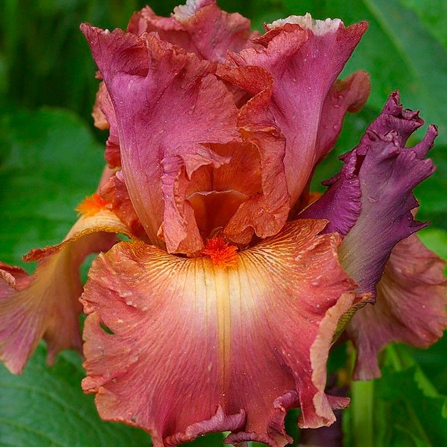 Dame de Coeur is a tall bearded iris with ruffled raspberry-red petals and tangerine beards, but this showy perennial can exhibit a range of colors from orange to purple. The flowers are slightly fragrant and good for cutting.