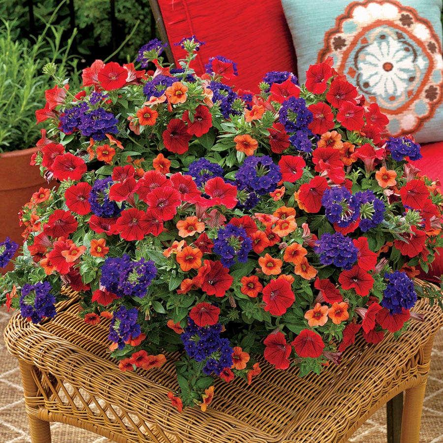 If there is a more colorful, fragrant, or easy to grow combination planting than Southwestern Summer, we demand to see it at once! This magnificent collection of 6 annual plants (2 each of 3 varieties) will keep your hanging baskets, flowerpots, and windowboxes bursting with rich color from late spring through fall in most climates -- no matter what extremes the weather may go to!