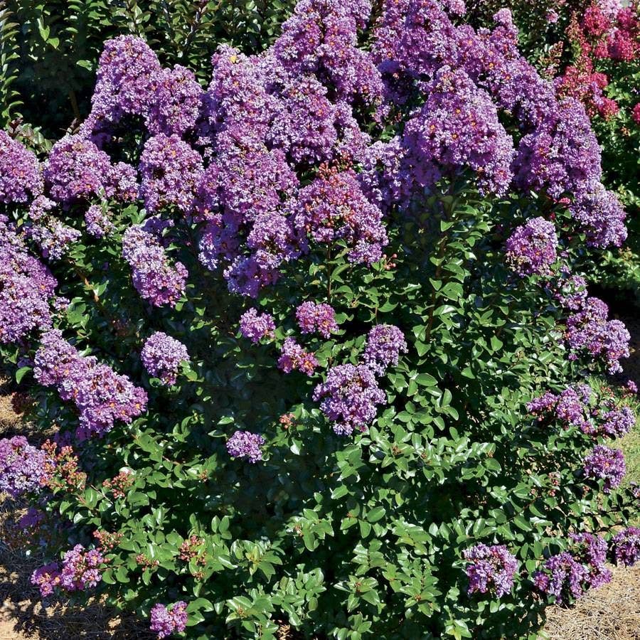 Purple Magic™ sets itself apart with intensely colored blooms of violet-purple. The strongest color ever seen in the Crapemyrtle family, these crinkly blooms are showstoppers! Crinkly and very abundant, they are accompanied by bright red spring foliage, only gradually greening out in summer. Expect blooms in great numbers from midspring to late spring, and then again in early summer.