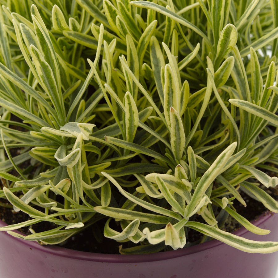Platinum Blonde™ gives English Lavender a modern update with beautifully variegated leaves topped with blue blooms on a compact, dense habit.