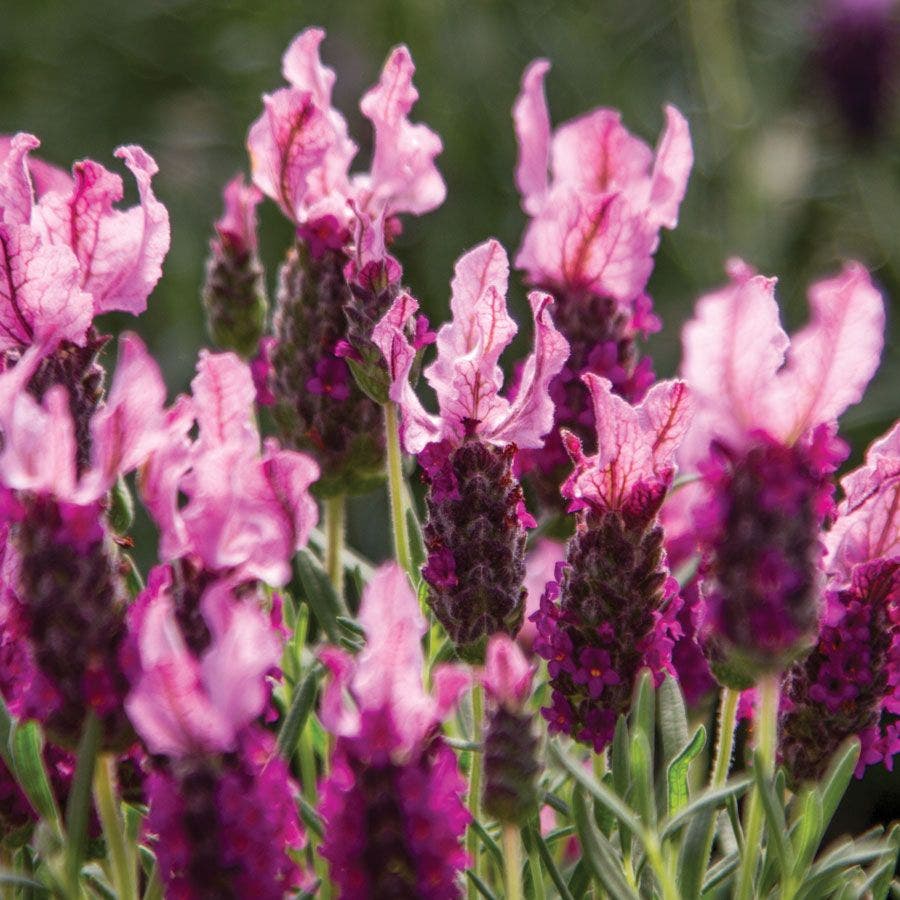 A Lavandula stoechas primavera, commonly called butterfly lavender, French lavender, or Spanish lavender, Lavandula New Madrid® Rose is native to the Mediterranean regions of Spain, Portugal, and Italy. With its compact structure, featuring a tight, upright, mounding habit, and a medium growth rate, it is perfect for beds, borders, or as a stunning specimen in a container garden. This lavender stoechas finds a special place in waterwise gardens and adapts well to various soils, thriving even in hot, humid climates.