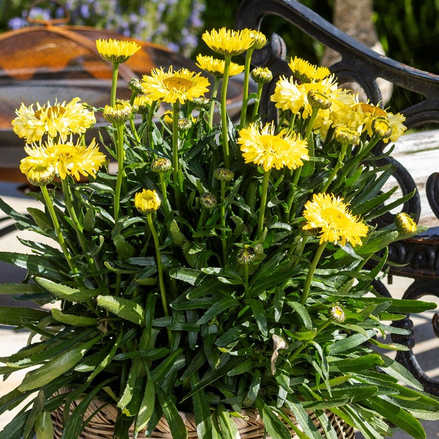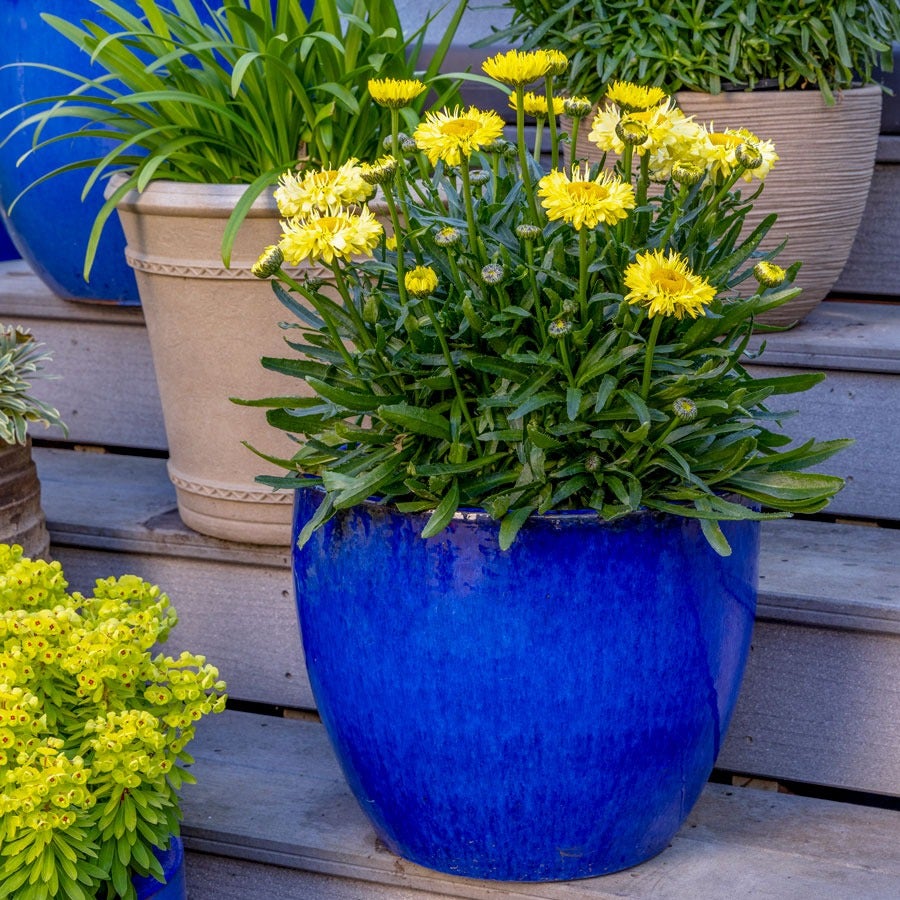 Leucanthemum Realflor® 'Real Jewel' is a petite perennial plant that grows to about 16 inches tall and 14 inches wide. A floriferous early to midsummer bloomer with a repeat fall bloom, it sets bright sunny yellow flowers with 3 layers of fancy frilled rays surrounding a deep golden yellow center. Borne on very strong stems covered in small, elegant, mid-green leaves, the long-lasting blooms phase through warm cream tones as they age and attract pollinators to the garden, including butterflies. These pretty little flowers are perfect for picking.