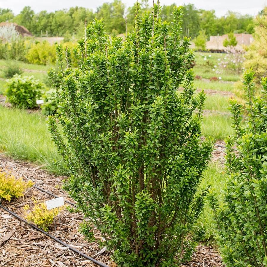 A First Editions® variety, Ligustrum Straight Talk® is a flowering evergreen shrub offering year-round interest. In late spring, this ornamental shrub blooms in fragrant tiny white flowers that are followed in fall by small, glossy black berries, which persist throughout winter, attracting birds.