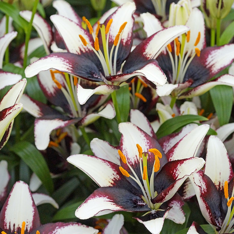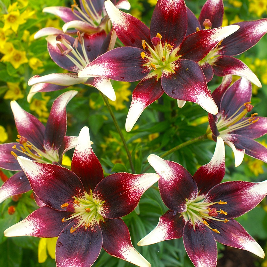 Asiatic lilies are a classic summer treat for the garden and this lovely variety is no exception. Rising on long, slender yet robust stems, the sizable blooms of this radiant beauty bear glossy, deep maroon petals with snowy white tips. The dramatic color display is sure to turn heads and then once it's captured your attention will lure you even closer with its heavy fragrance. One of the best virtues of this plant is its eagerness to please. Not only is Lilium Asiatic 'Netty's Pride' an early bloomer, this lily is has a remarkable tenacity when it comes to surviving environmental stressors. This plant withstands extreme cold, heat, drought, humidity and even disease like a champion. With its many pleasing attributes it's clear that 'Netty's Pride' has much to be proud about. To ensure the continued life of these bulbs in cooler zones (3-7) dig up the bulbs and store them through winter then replant them the following spring.