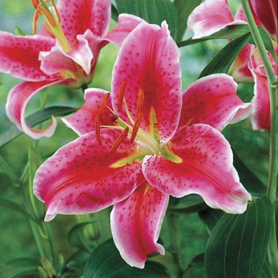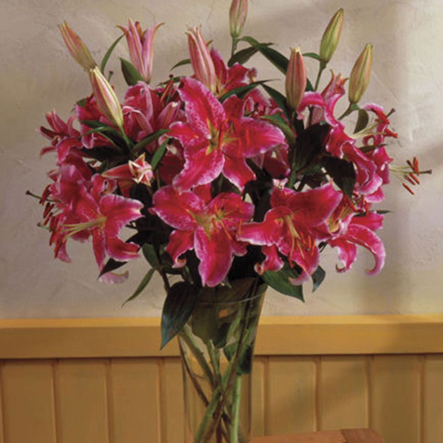 Plant Stargazer oriental lily bulbs 6 to 8 inches apart and 6 to 8 inches deep. Site bulbs in a location that receives 6 to 8 hours of sun each day and has freely draining soil. They prefer cool, medium moist soils with a slightly acidic pH and grow best with their heads in the sun but their roots in the shade of low-growing companions. Keep plants mulched well. Feed oriental lilies with Espoma Organic® Bulb-tone® Bulb and Flower Food in spring as growth begins. Remove faded flowers immediately but allow foliage to die back naturally before removing. Stargazer oriental lilies are cold hardy to Zone 3 and deer resistant and rodent resistant.