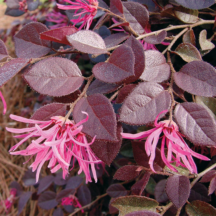 The Crimson Fire™ Lorepetalum is a plant guaranteed to bring oohs and ahs to your garden. Standing approximately two and a half feet high, this flowering, evergreen shrub is excellent for planting in foundations and in small spaces. The brilliant red and burgundy coloring of the foliage adds a splash of color throughout the entire year. Every spring, the cheerful, bright pink blooms are a delight to the eye as well as an irresistible temptation to both hummingbirds and butterflies. Consider planting the Crimson Fire™ Lorepetalum in shady areas and along borders.