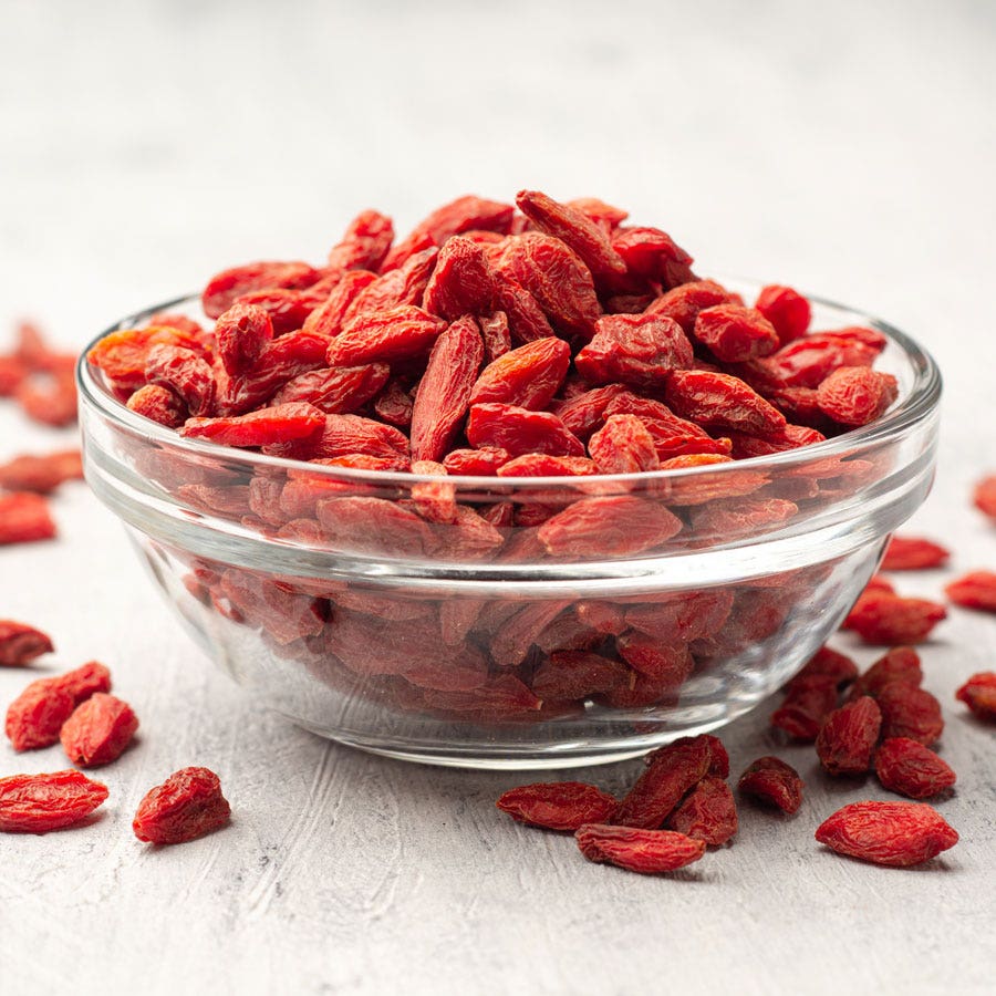 Lycium 'Firecracker' Goji Berry is a fruiting deciduous shrub that grows tall and wide and blooms in purple-white flowers in early summer, beginning the 2nd year. An early, heavy fruiter, the plant sets brilliant scarlet-red berries in fall, with maximum fruit production occuring in the 4th or 5th year. The berries are juicy and sweet when eaten fresh, but they can also be frozen or dried. When dried, the fruit looks like a red raisin. Considered a superfruit and used for centuries in traditional Chinese medicine, goji berries are high in antioxidants, carotenoids, lutein, zeaxanthin, iron, zinc, selenium, essential fatty acids and fiber and have a respectable amount of protein.