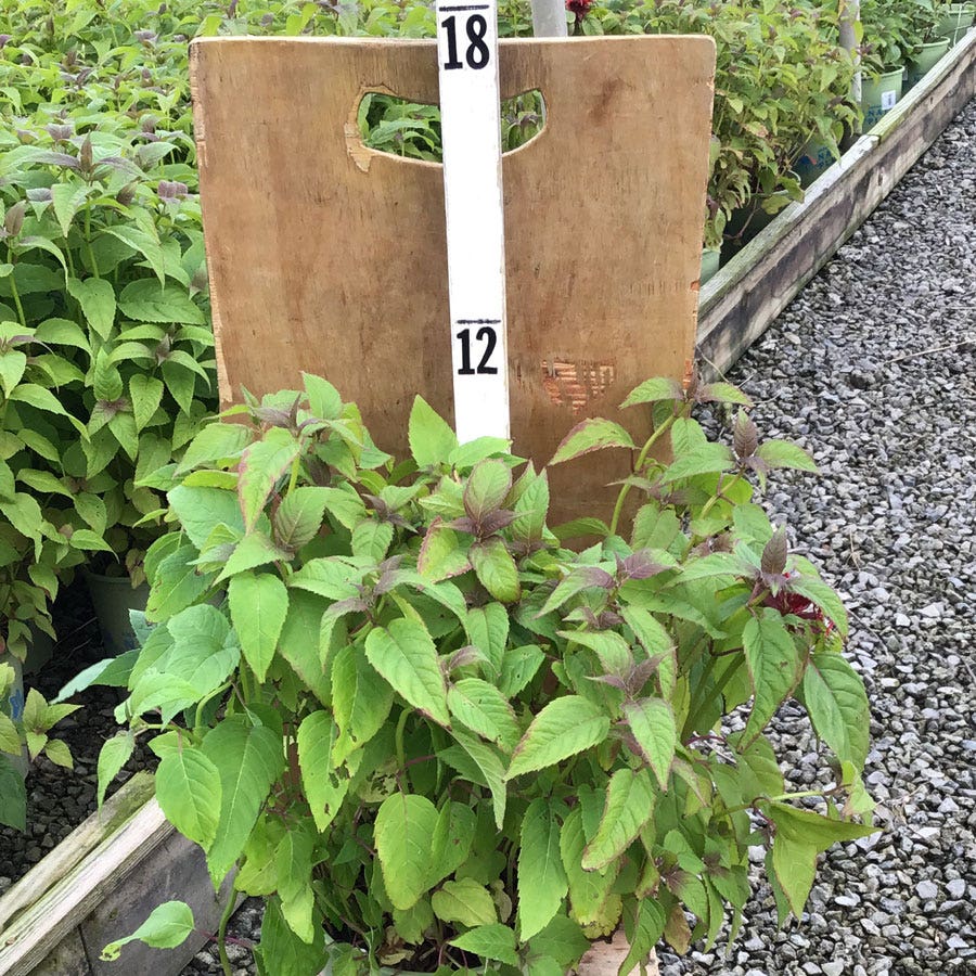A Monarda didyma variety, commonly called bee balm and bergamot, 'Jacob Cline' is a tall, clump-forming herbaceous plant with a mounding habit of medium-green foliage that emits a minty scent when crushed or bruised. The plant is fast-growing, rhizomatous, and self-seeding and forms colonies over time. An attractive plant even when not in bloom, 'Jacob Cline' is shown to best effect when mass planted in borders and beds but also makes a lovely specimen and fits nicely in a container.