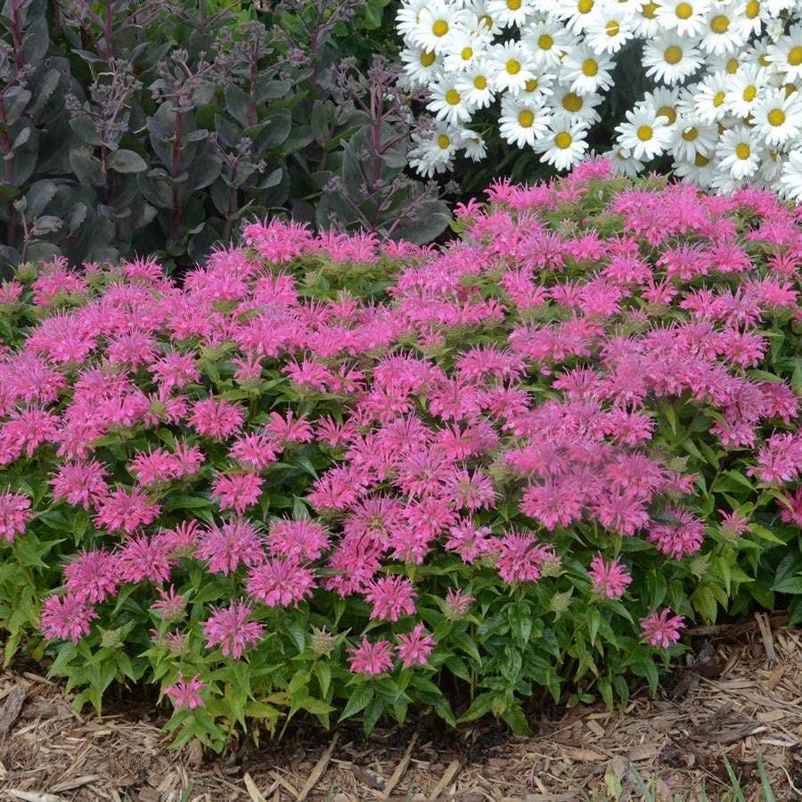 Pardon My Pink has a compact, very well-branched habit, with shorter and more abundant stems filled with deep green leaves. No matter how humid or rainy your climate is, this plant will look as good in late August as it did in June! The bright flowers complement the foliage marvelously, adding a vibrant new shade to Monarda's color palette.