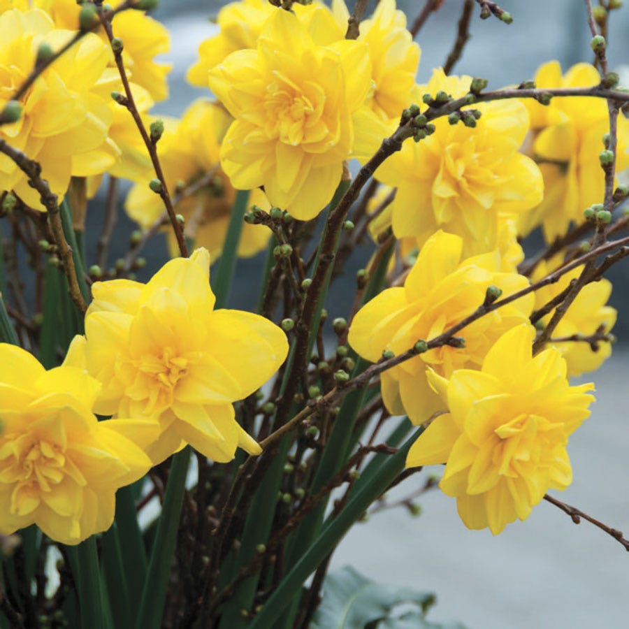 A cold hardy (to Zone 3) bulbous perennial, Narcissus Golden Ducat is so easy to grow and maintain it's virtually foolproof. Daffodils prefer areas with cool winters and warm, dry summers, but they grow well in most USDA Hardiness Zones if there is a discernable winter. The plant grows best in sunny to partly shady locations with rich, fertile, well-draining soil having a neutral to acidic pH. When planting Golden Ducat bulbs, allow adequate space between bulbs and plant them at the proper depth8 inches apart and 6 inches deep. Water daffodils during the growth period, but keep in mind, bulbs do not like wet feet. For robust flowering during the current season as well as the following spring season, feed bulbs with a well-balanced fertilizer, such as Espoma Organic® Bulb-tone® Bulb and Flower Food, as soon as growth begins in spring. After flowers bloom, allow foliage to die back naturally and cut back once fully faded. Golden Ducat daffodils are relatively pest-free and deer resistant.
