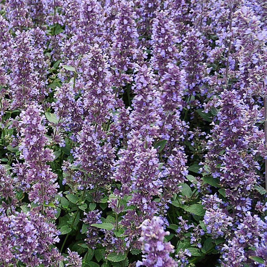 Remarkably low maintenance, catmint prefers full sun and average, dry to medium, well-drained soils. In hot summer climates, light afternoon shade may be beneficial. Fertilize plants once per month during growing season and trim them in midsummer to encourage rebloom in fall. The plant is frost tolerant and is bothered by few pests, including deer and rabbit.