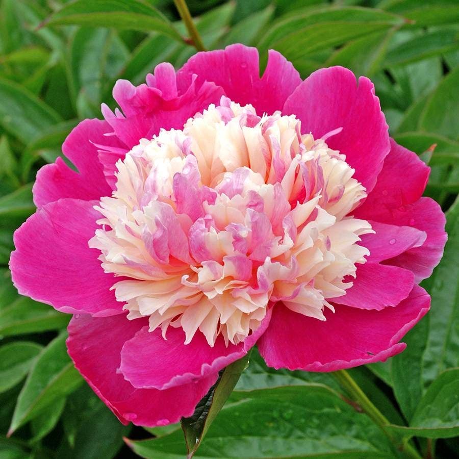 A rare and choice masterpiece from William Krekler, one of America's outstanding breeders. An outer whorl of raspberry pink petals surrounds a large vanilla ice cream scoop center. As the flowers mature they become more irresistibly pink. Of typical Japanese form, this vigorous grower blooms midseason on 32-inch plants. Butterflies adore its blooms almost as much as you will. Despite its diva looks, this plant is quite easy to care for and thus makes a great gift for the green-thumbed loved ones on you gift list. A real treat for any Peony enthusiast!