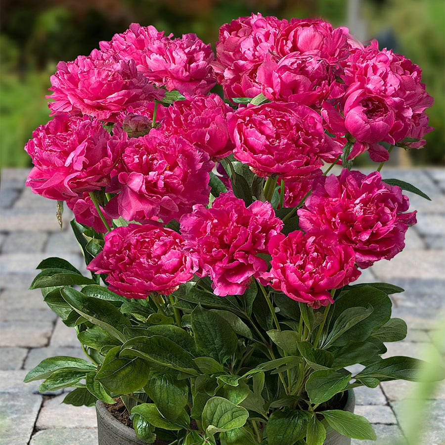Peonies are one of the longest-lived perennials, lasting for generations and exhibiting enormous, luxurious blooms with the look, fragrance, and staying power of the finest roses. Discover the winning merits of this old-fashioned favorite in your own garden with the Peony London. It boasts frilly raspberry pink flowers with double blooms! These show stopping flowers will bloom in your garden all summer long. Use them in your sunny beds for beautiful color in your landscape. These beautiful peonies are also amazing for cut flowers and container gardens. They have a compact habit that snuggles in their strong stems and upright flowers! The dark pink blooms stand out against the medium green foliage and will stand proudly upward. Add this gorgeous peony to your collection for blooms worth gushing over. Very good flower production. Zones 3-8