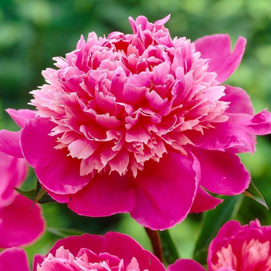 Typical of Paeonia, commonly called peony, 'Madame Emile Debatane' is a long-lived, clump-forming, herbaceous plant. It has a rounded, mounded habit of glossy, dark green foliage and fast growth rate. This peony makes a beautiful specimen but is shown to best effect when grouped or massed in mixed beds and borders. It's a lovely back drop for spring bulbs and a good companion plant for hydrangea, philadelphus, campanula, echinacea, and phlox.