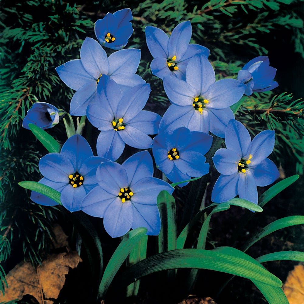 Meet the longest-blooming spring bulb in the garden. 'Jessie' is a member of the Ipheion family, a close relative of Allium, and blooms heavily in shade. You will love these gentian-blue flowers for up to 8 weeks in the spring garden.
