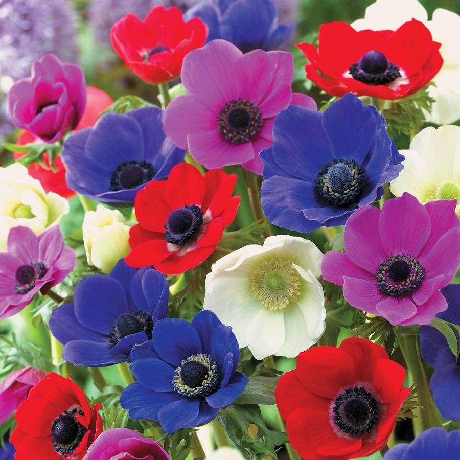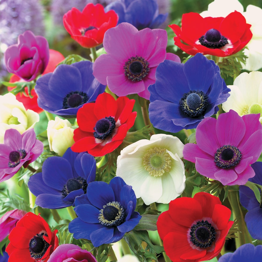 Why limit your spring-blooming garden to yellows, blues, and whites, when you can add a dash of warm reds and bright pinks with this stunning mixture of early-blooming Poppy-flowered Anemones? The De Caen name is a classic in Anemones, and De Caen is simply the best mixture of colors available anywhere!