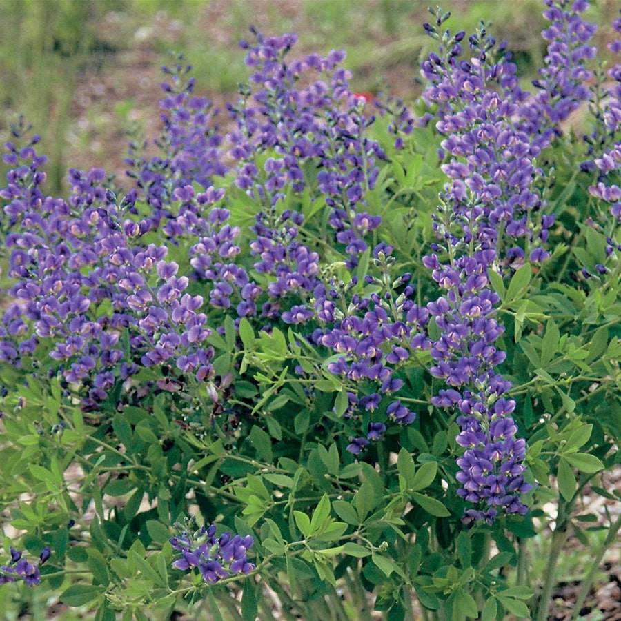 - Description / Baptisia Decadence® 'Blueberry Sundae' False Indigo- This Proven Winners® 'Blueberry Sundae' is just as sweet as its name suggests. With bold indigo flower wands towering over lush blue-green foliage, this perennial packs quite the visual punch. The Baptisia Decadence® 'Blueberry Sundae' flower show begins in late spring and rolls into summer drawing lots of attention from pollinators like butterflies and appreciative humans alike. Best of all, this variety of false indigo is as tough as it is gorgeous. It defies drought, rebuffs deer, flourishes in poor soil, and boasts all of the ease of care we've come to expect from native plants. This easy to care for perennial is both compact and self-cleaning so it needs no deadheading to stay lush and lovely. Add it to your beds and borders and let it sweeten your landscape with color and life. Don't delay - treat yourself to the decadent beauty of 'Blueberry Sundae'.