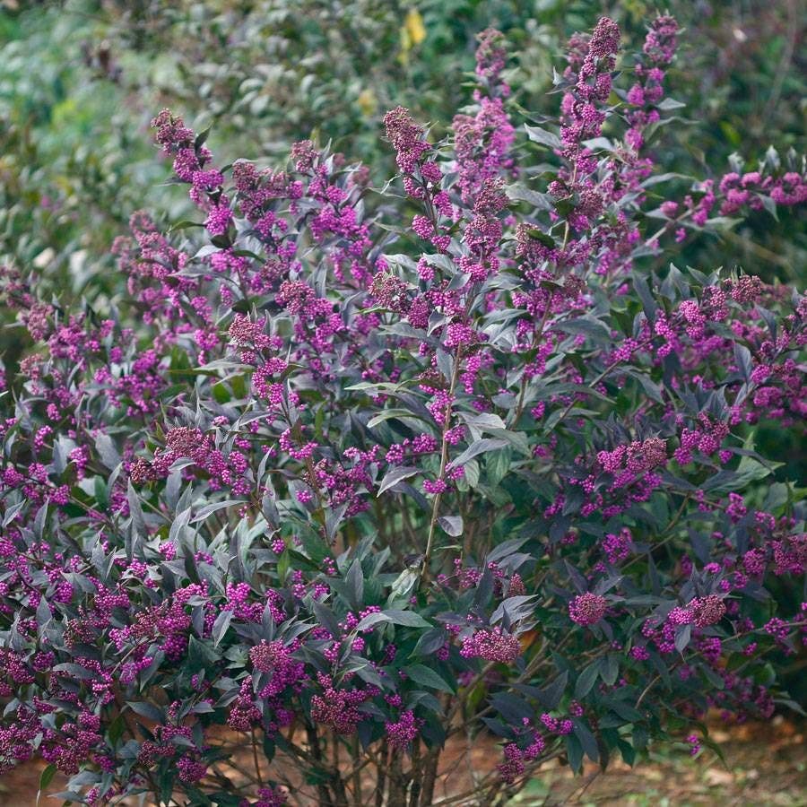 Callicarpa Pearl Glam® offers bold color from summer to autumn. Most beautyberries are planted just for their striking deep purple berries that offers tons of fall color, but this variety offers that and so much more! The vibrant berries are backed by deep purple foliage, adding extra dimension and color to this shrub. Callicarpa Pearl Glam® is a whole new color and look for Callicarpa.
