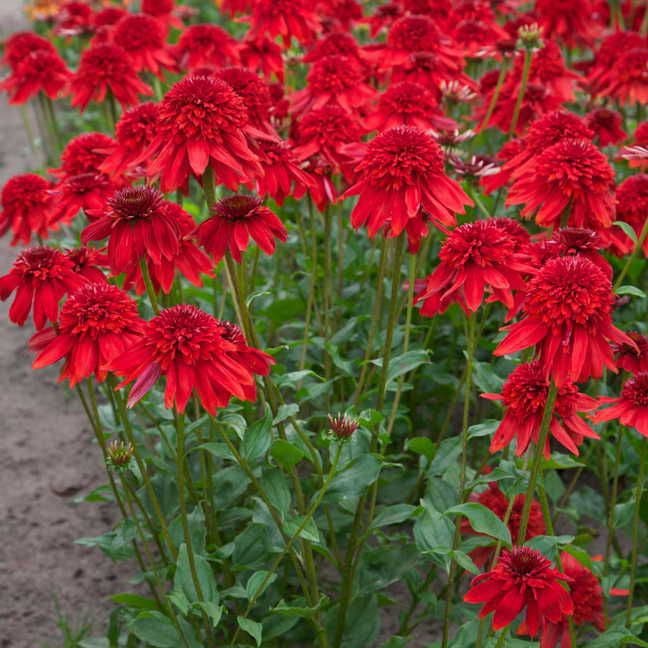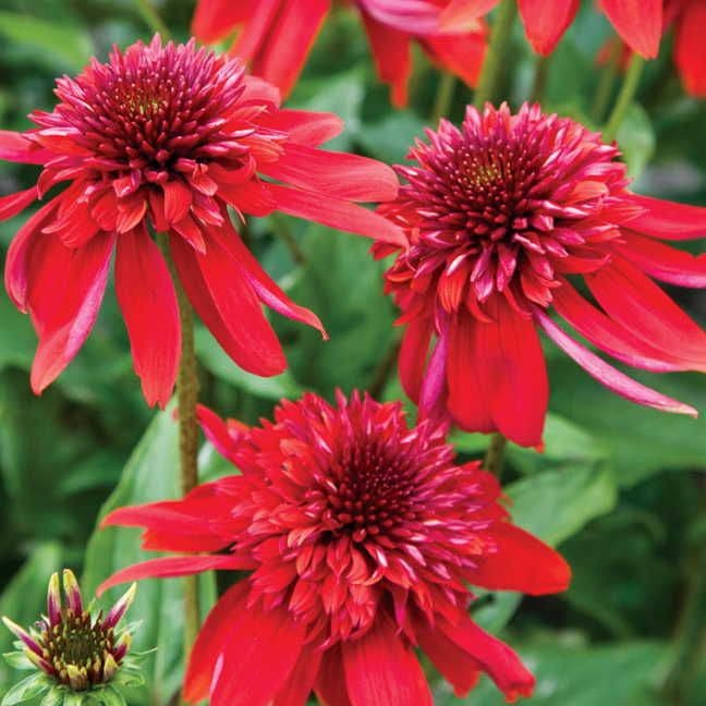 The blooms of 'Eccentric' are unparalleled, making it the most brilliant double red coneflower available. Its red echinacea blooms, from mid to late summer, present a perpetual display of vibrant red flowers that shift to an orange-red hue. This dynamic color change, alongside the spikey yet flowery centers, attracts bees and butterflies, enhancing the garden's ecosystem.