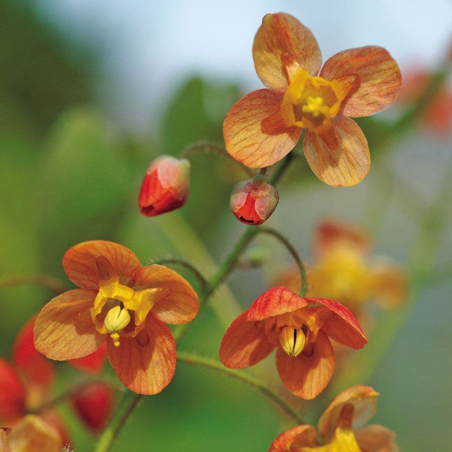Synonym: 'Orangekonigin.' We are delighted to bring this splendid Epimedium to Wayside gardeners this season, and we urge you to reserve your plants at once to avoid disappointment. 'Orange Queen' is a stellar cultivar, its lovely tricolored blooms making sense of the common name Fairy Wand, while its handsome foliage (changing colors every season) offers year-round appeal on an open, airy habit. If you have a patch of dry shade that you would like to plant rather than mulch, 'Orange Queen' is the perennial you must have!