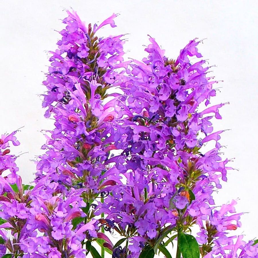 A member of the Sunrise™ Series, Blue is a compact perennial that grows to a mature size of 24 inches tall and 18 inches wide. Long- and heavy-blooming, the plant sets tall, showy spikes dense with tubular, 2-lipped flowers from mid-spring to mid-fall. Nectar-rich and highly fragrant, the bold blue blooms are irresistible to bees, butterflies, and hummingbirds; and if allowed to go to seed, they also beckon songbirds. They make stunning cut flowers for floral arrangements or summer bouquets, fresh or dried.