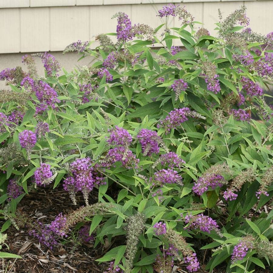 Another addition to the Lo & Behold® series of dwarf Buddleias, Purple Haze has a distinctive horizontal, low-spreading habit adorned with dark green, feathery leaves. Its deep purple-blue, butterfly- and hummingbird-attracting blooms grow outward and downward, starting in midsummer and appearing continuously until frost. What a glorious accent for the sunny garden.