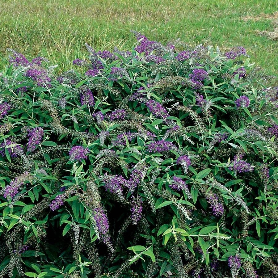 Purple Haze reaches a height of 24 to 36 inches and a width of 36 to 42 inches. Great for use as a groundcover or in perennial gardens and mixed borders, this beautiful Butterfly Bush needs only occasional watering once it's established, and since it's a sterile variety, it won't produce any unwanted seedlings.