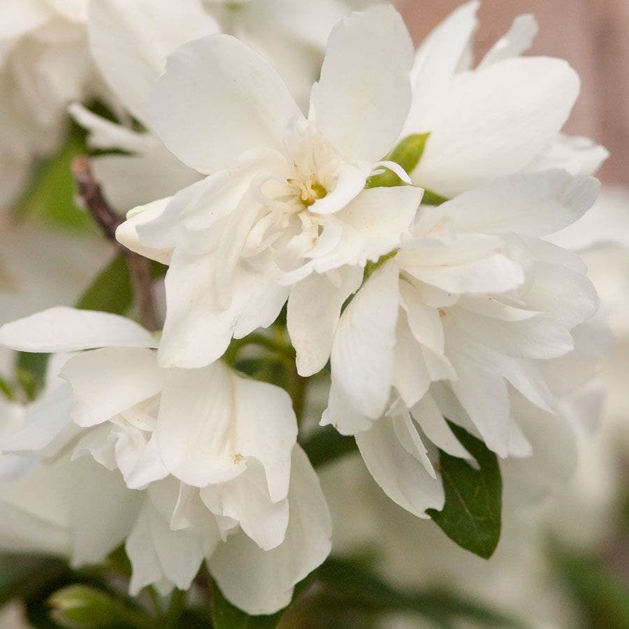 Philadelphus 'Snowbelle' is a flowering deciduous shrub offering 3 seasons of interest, blooming in late spring or early summer. Borne on graceful, arching branches dense with variegated dark green foliage, abundant clusters of highly fragrant, bright white double flowers perfume the garden with a citrusy orange-blossom scent, attracting bees and butterflies. The lustrous, oval leaves add color and texture to the garden all season and are often used as foliage filler in floral arrangements.