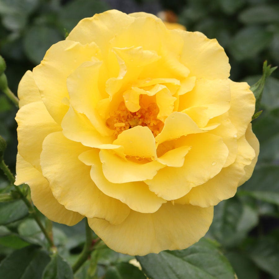 The center petals are the purest yellow we have seen in a rose, which dissolves into lighter, almost-white at the edges. Each bloom is packed tightly with petals, forming a delicate cup. And these roses continue to bloom throughout the season.