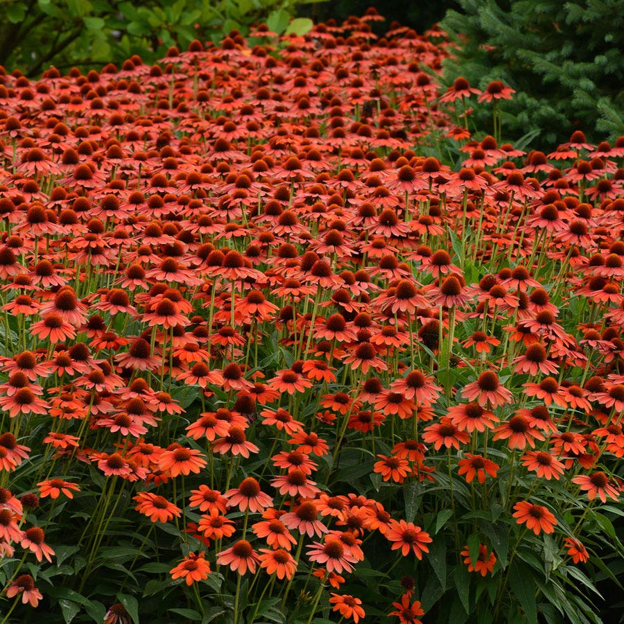'Flamenco Orange' is a fiery addition to the prestigious Sombrero® line of coneflowers which finds the perfect balance of resilience and floral excellence. This compact native perennial stands just 2 feet tall, but is tough despite its size and withstands harsh winter weather much better than the competition. Its blooms are vibrant orange and bear a gentle yet unmistakable fragrance. Coneflower fans will want to add this feisty new addition to their gardens and to their cut flower arrangements as well. Flamenco is as easy to care for as it is to enjoy and only needs deadheading if you want to encourage new blooms.